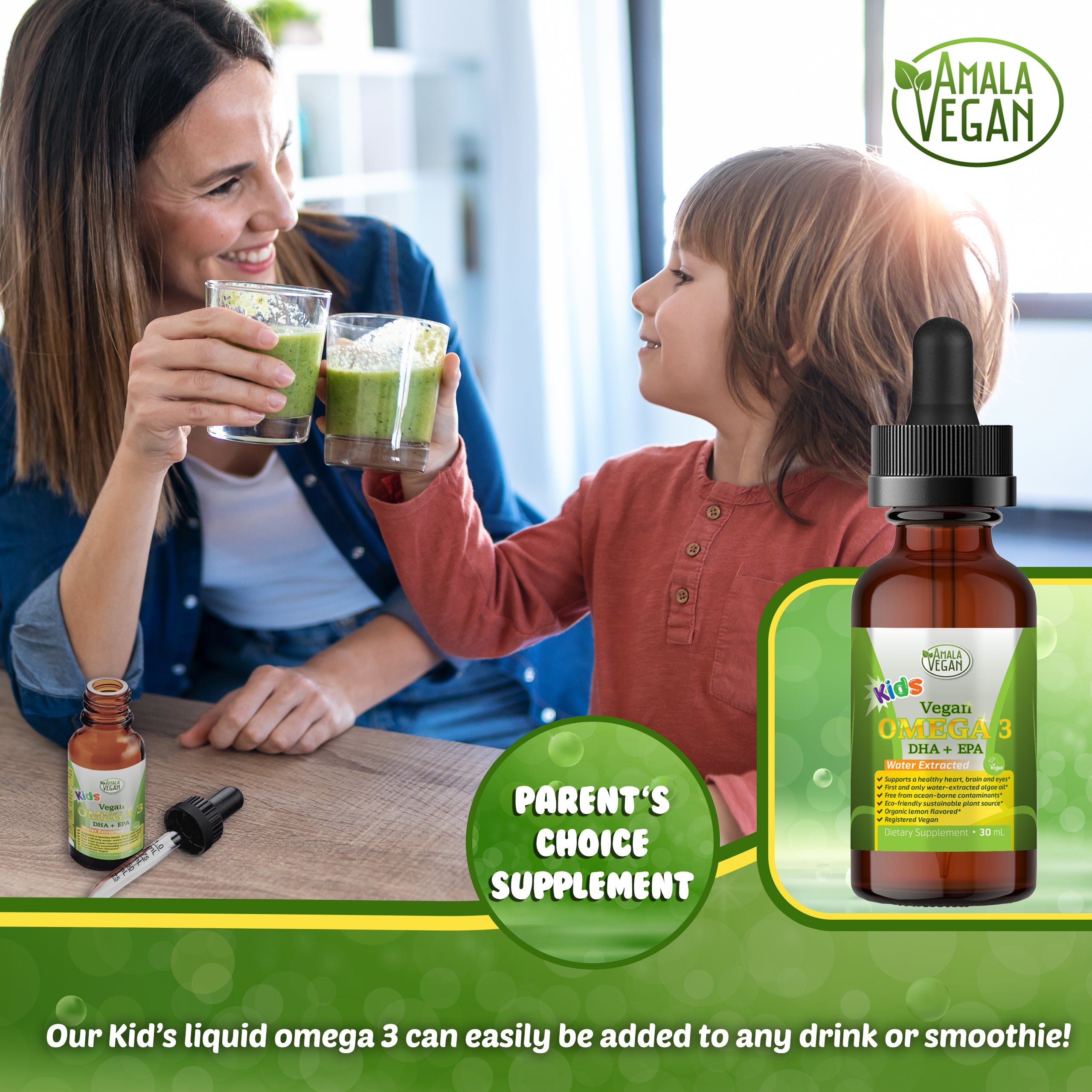 Thanks to our unique extraction process, kids can now easily benefit from the all new Amala Vegan liquid solution. Give your children a healthy plant-based Omega-3 supplement for development that sets them up for a life full of wellness.